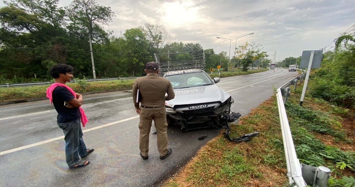 วันที่ 24 พฤศจิกายน 2567 ร.ต.อ.อัฑฒ์ไชยา แสงยศ รอง สว.(สอบสวน) สภ.หนองซอน พร้อมผู้ช่วยร้อยเวร 30 ตรวจสอบเหตุรถยนต์เฉี่ยวชนแผงกั้นขอบทาง ไม่มีผู้ได้รับบาดเจ็บ รถยนต์ได้รับความเสียหาย แผงกั้นขอบทางเสียหายเล็กน้อย เหตุเกิดที่ ถนนสาย ยางตลาด – เชียงยืน บริเวณตรงข้ามเทศบาลตำบลโพนทอง อ.เชียงยืน จ.มหาสารคาม