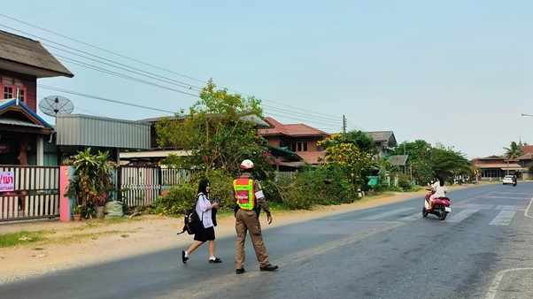 ด.ต.ธนภณ ทีโพธิ์หาด ผบ.หมู่(ป.)ฯ จ.ส.ต.สรศักดิ์ พลายบัว ผบ หมู่.(ป)ฯ สภ.หนองซอน ว.4 อำนวยความสะดวกการจราจรหน้าโรงเรียนบ้านหนองซอน