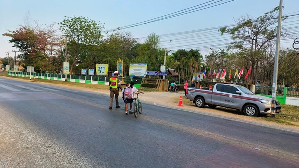 ด.ต.ธนภณ ทีโพธิ์หาด ผบ.หมู่(ป.)ฯ จ.ส.ต.สรศักดิ์ พลายบัว ผบ หมู่.(ป)ฯ สภ.หนองซอน ว.4 อำนวยความสะดวกการจราจรหน้าโรงเรียนบ้านหนองซอน