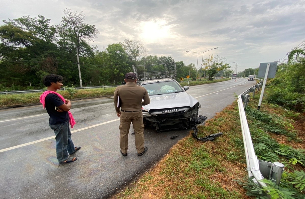 วันที่ 24 พฤศจิกายน 2567 ร.ต.อ.อัฑฒ์ไชยา  แสงยศ รอง สว.(สอบสวน) สภ.หนองซอน พร้อมผู้ช่วยร้อยเวร 30 ตรวจสอบเหตุรถยนต์เฉี่ยวชนแผงกั้นขอบทาง ไม่มีผู้ได้รับบาดเจ็บ รถยนต์ได้รับความเสียหาย แผงกั้นขอบทางเสียหายเล็กน้อย เหตุเกิดที่ ถนนสาย ยางตลาด – เชียงยืน บริเวณตรงข้ามเทศบาลตำบลโพนทอง อ.เชียงยืน จ.มหาสารคาม